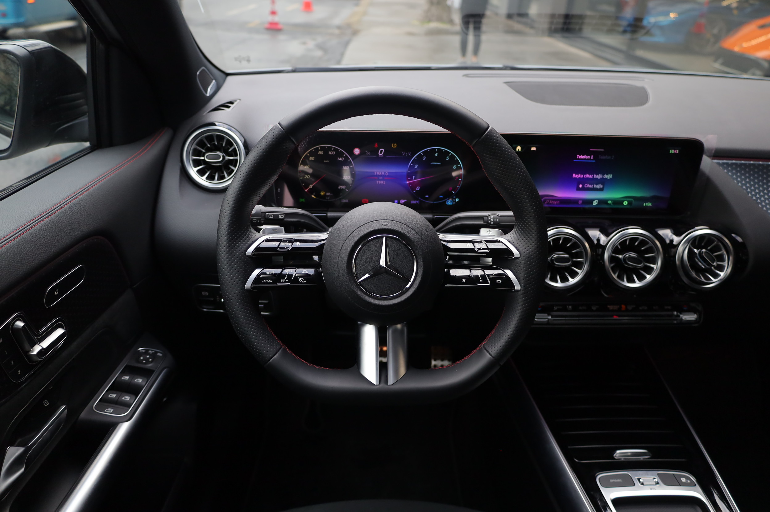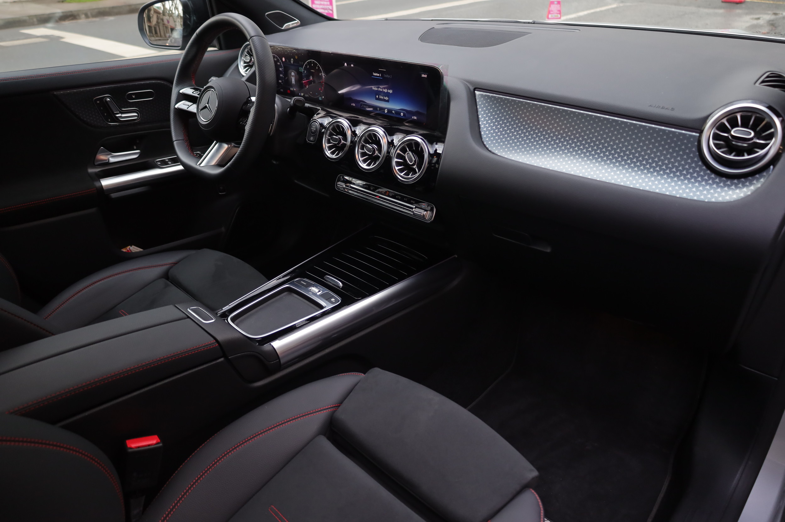 KIRMIZI DİKİŞLİ KESİK DERİ DİREKSİYON